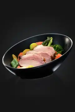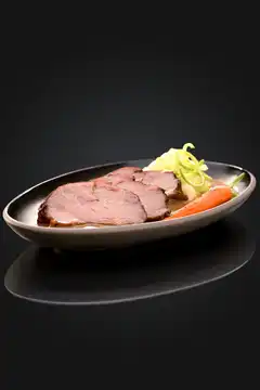 Das Edelstück vom Kalb mit dem besonderen Schmelzfaktor. Makellos zugeschnitten mit einem sanften Rosa im Anschnitt lässt der vorgegarte Kalbsbraten vom Schulterscherzel jedem das Wasser im Mund zusammenlaufen. Der erste Biss offenbart eine unvergleichlich saftige, zart-weiche Konsistenz.