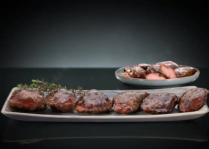 Durch diese Vorbereitung in unserer Fleischmanufaktur erreichen Sie zu Hause immer ein optimales Geschmackserlebnis. Sie braten in nur 10 Minuten in der Pfanne Schweinsbackerl in Vollendung. Butterzartes Fleisch, das auf der Zunge zergeht, wie stundenlang geschmort, unglaublich saftig ohne Garverlust, sensationelles, pures Fleischaroma ohne jegliche Zusatzstoffe und Geschmacksverstärker.